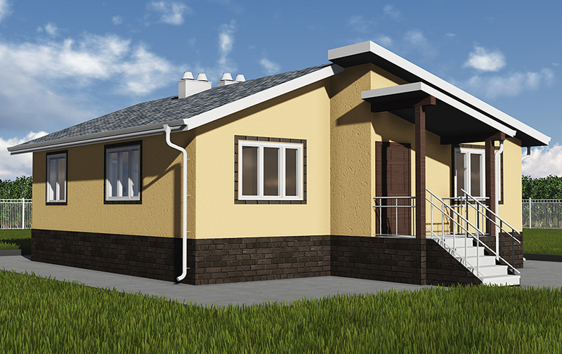 Удобный, небольшой одноэтажный дом, — идеальный выбор для загородного, дачного дома.