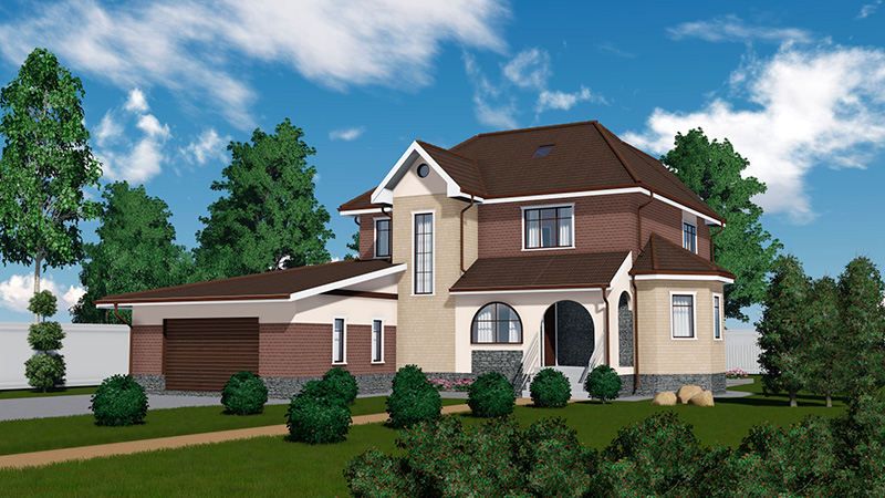 Большой уютный двухэтажный дом с гаражом и сауной. Проект прекрасно подойдет для загородного жилья для большой семьи.